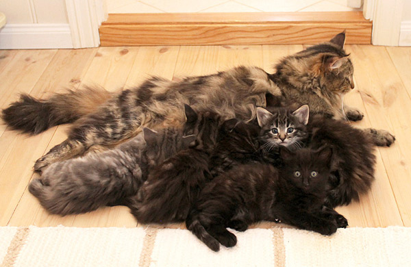 Love and Wolverine's kittens born March 6th 2013Both parents GSD IV-normal and HCM-normal Pedigree PawPeds Complete inbreeding = 4,33% Inbreeding 10 generations = 2,70% More photos and info can also be found down this page and at Av Moltemyr Norsk Skogkatt on Facebook