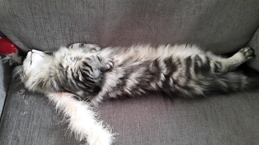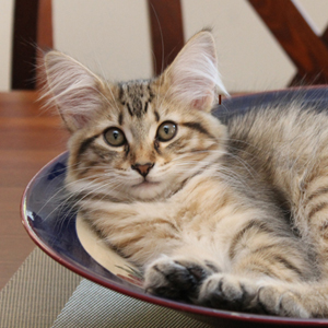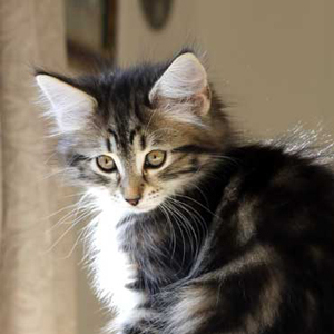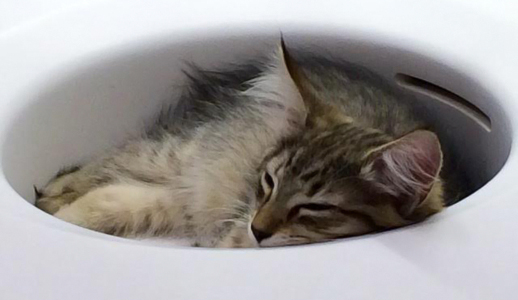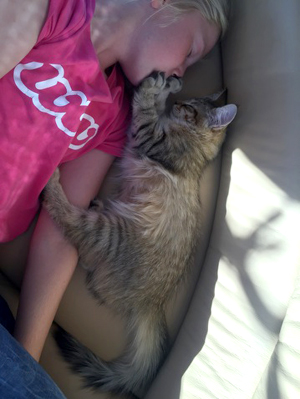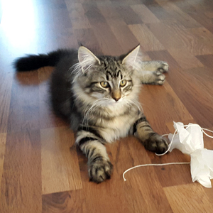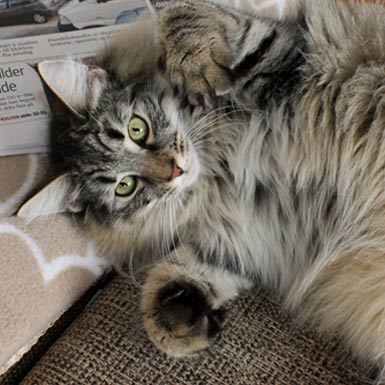 Storm moved to a nice family in Stokke, Norway. He just loved the traveling-box :)